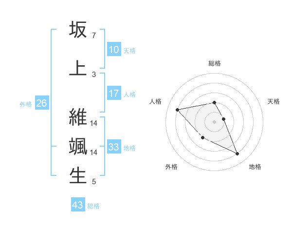 坂上 維颯生さんの総格は43画の2点!