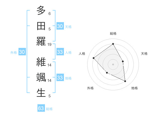 多田羅 維颯生さんの総格は63画の4点