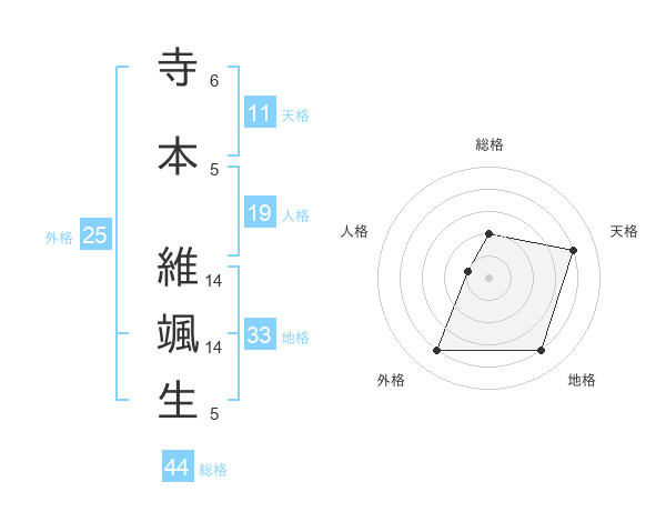 寺本 維颯生さんを姓名の画数から五運を鑑定