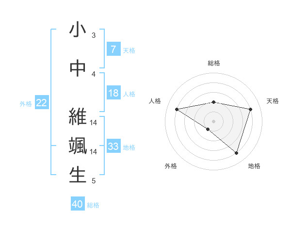 小中 維颯生さんを姓名の画数から五運を鑑定