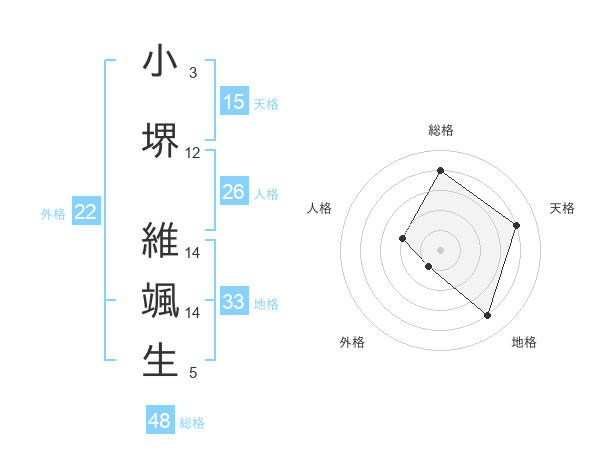 小堺 維颯生さんの総格は48画の4点!