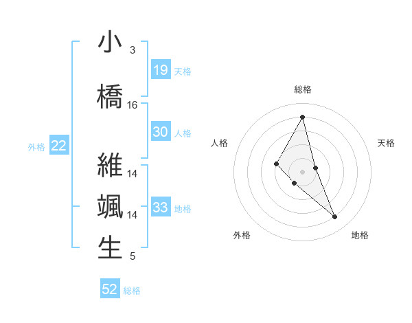 小橋 維颯生さんを姓名の画数から五運を鑑定