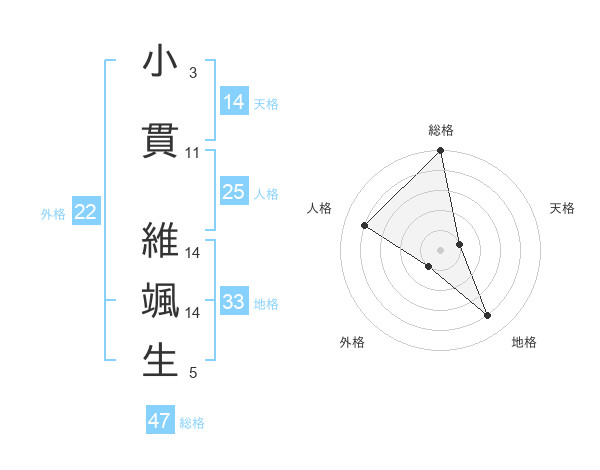小貫 維颯生さんの総格は47画の5点!