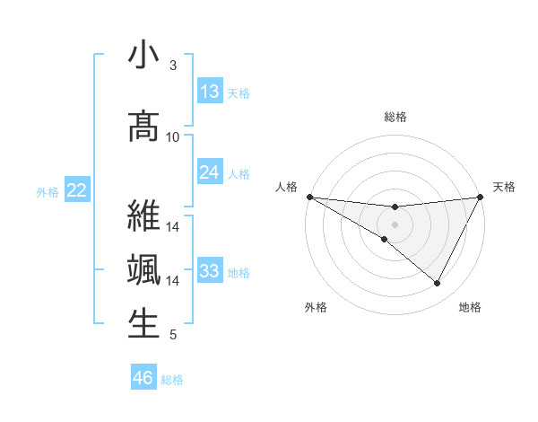 小髙 維颯生さんの総格は46画の1点!