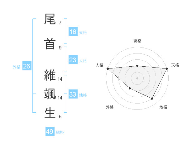 尾首 維颯生さんの天格は16画の5点!