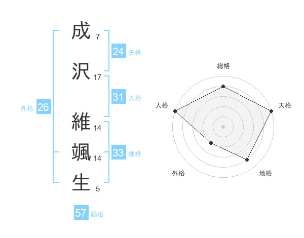成沢 維颯生さんを姓名の画数から五運を鑑定