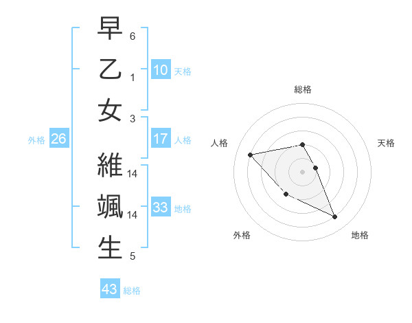 早乙女 維颯生さんを姓名の画数から五運を鑑定