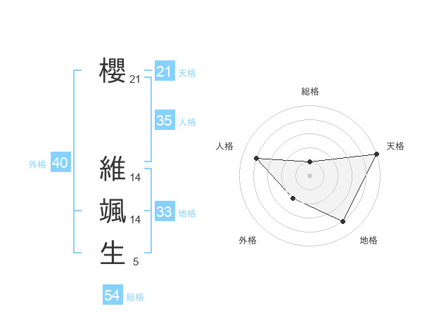 櫻 維颯生さんを姓名の画数から五運を鑑定