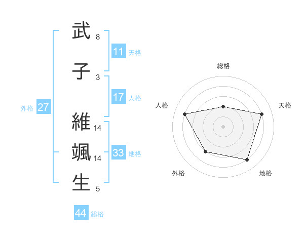 武子 維颯生さんを姓名の画数から五運を鑑定