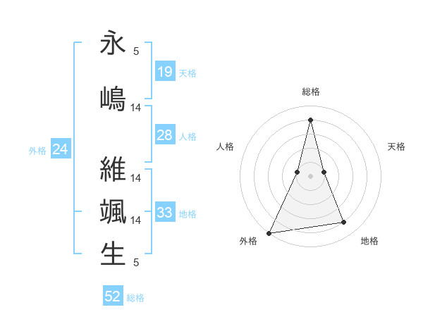 永嶋 維颯生さんを姓名の画数から五運を鑑定