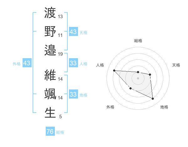 渡野邉 維颯生さんを姓名の画数から五運を鑑定
