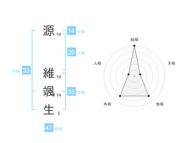 源 維颯生さんの総格は47画の5点!