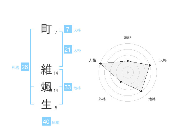 町 維颯生さんの天格は7画の4点!