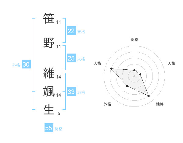笹野 維颯生さんを姓名の画数から五運を鑑定