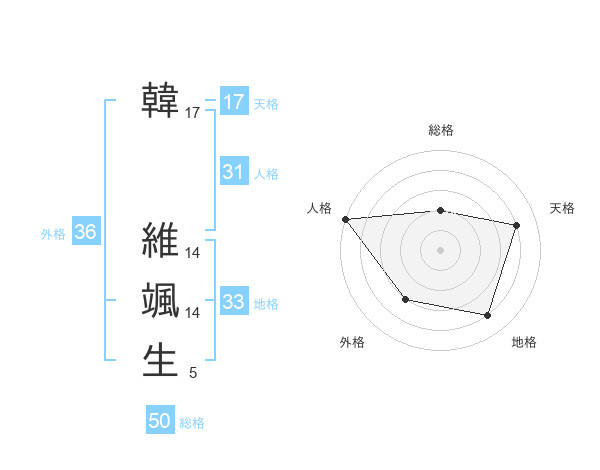 韓 維颯生さんの総格は50画の2点!
