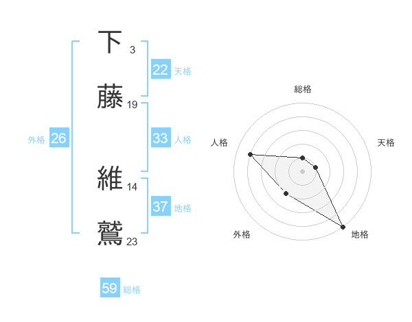 下藤 維鷲さんの総格は59画の1点!