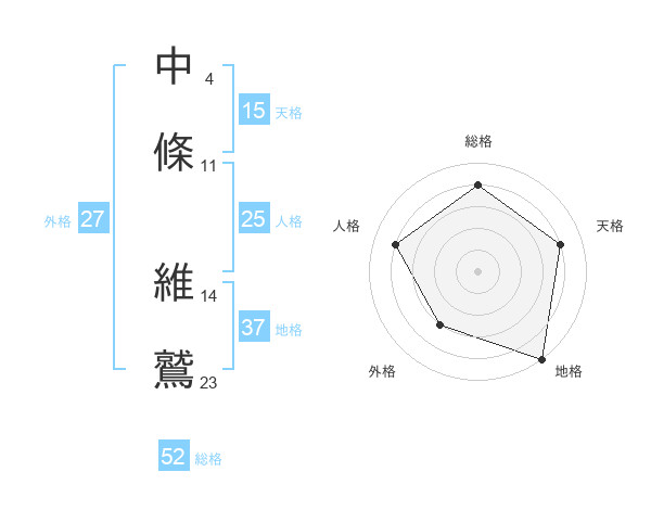 中條 維鷲さんの総格は52画の4点!