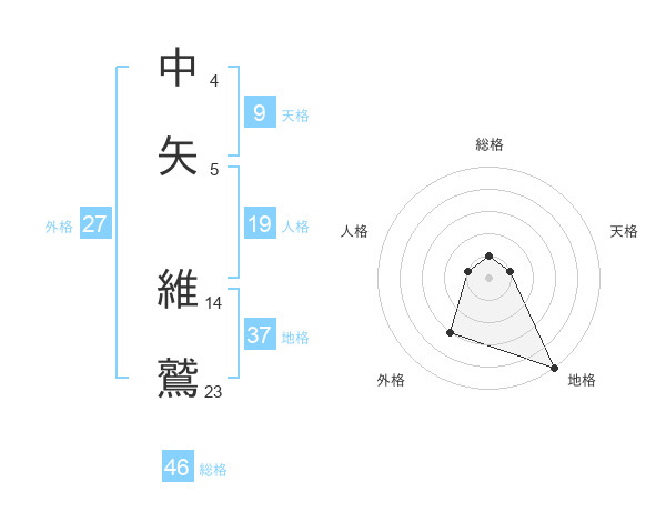 中矢 維鷲さんの総格は46画の1点!