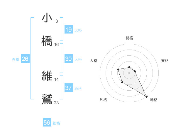 小橋 維鷲さんを姓名の画数から五運を鑑定