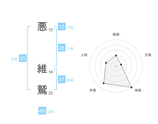 悪 維鷲さんの総格は49画の2点!