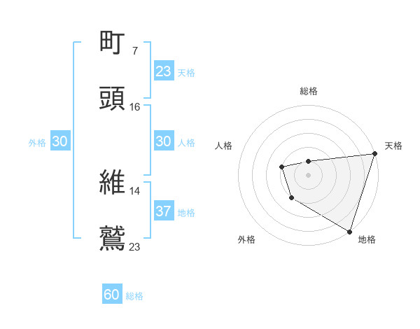 町頭 維鷲さんを姓名の画数から五運を鑑定