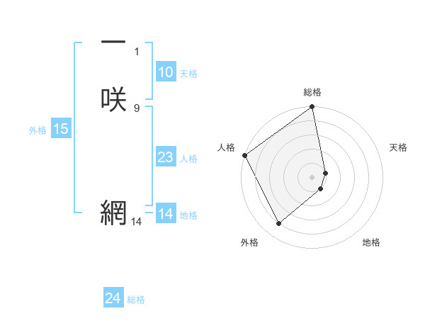 一咲 網さんの外格は15画の4点!