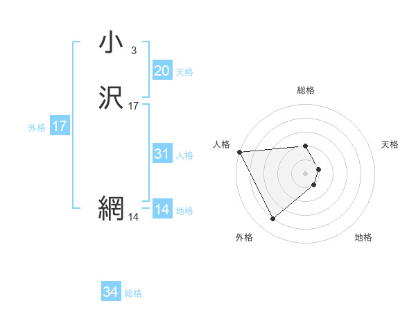 小沢 網さんの外格は17画の4点!