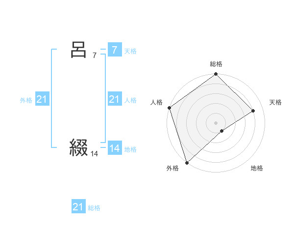 呂 綴さんの総格は21画の5点!