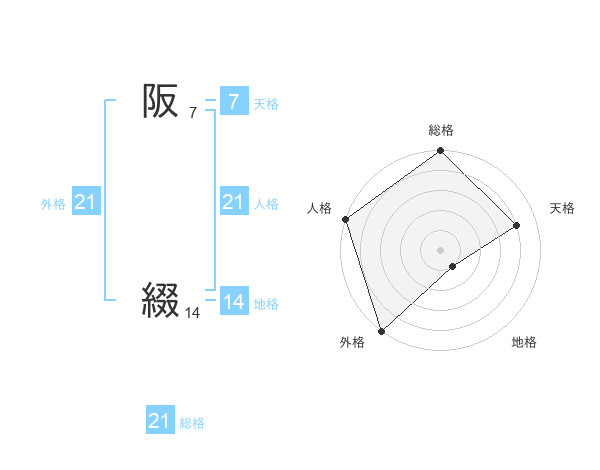 阪 綴さんの総格は21画の5点!