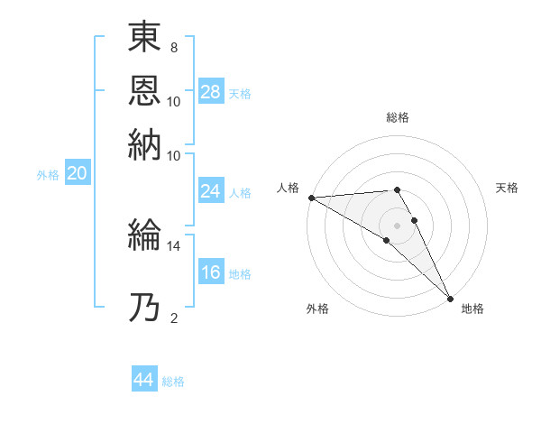 東恩納 綸乃さんの総格は44画の2点!