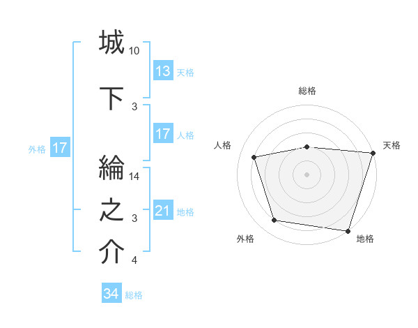 城下 綸之介さんを姓名の画数から五運を鑑定