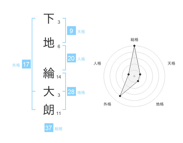 下地 綸大朗さんを姓名の画数から五運を鑑定