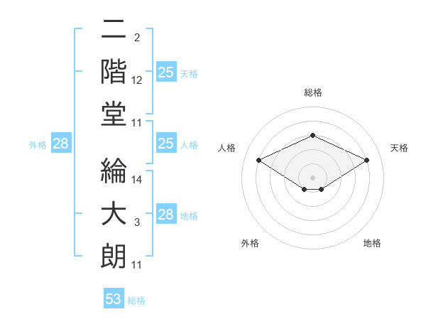 二階堂 綸大朗さんの総格は53画の3点!