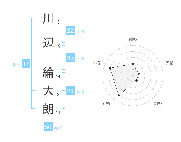 川辺 綸大朗さんの総格は50画の2点!