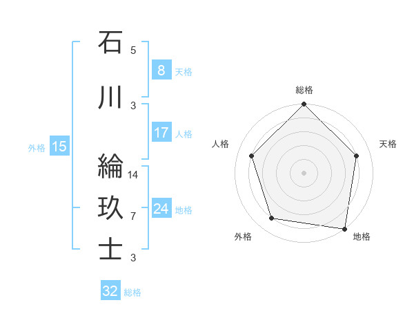 石川 綸玖士さんの総格は32画の5点