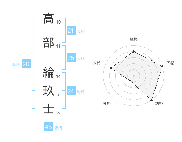 高部 綸玖士さんを姓名の画数から五運を鑑定