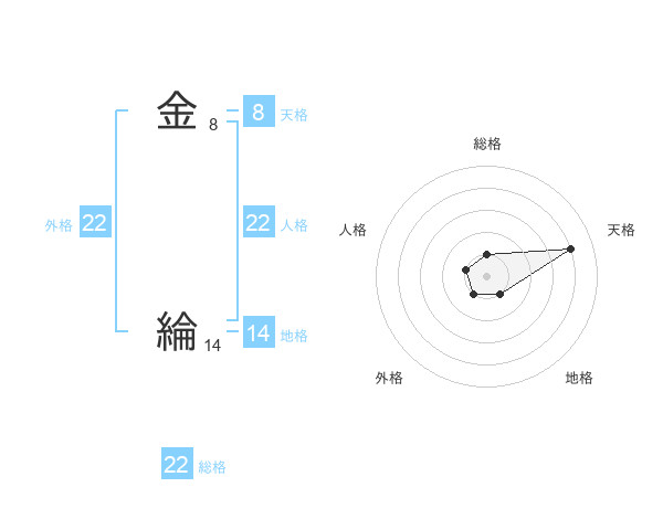 金 綸さんの外格は22画の1点!