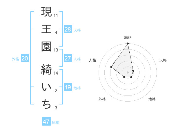現王園 綺いちさんを姓名の画数から五運を鑑定