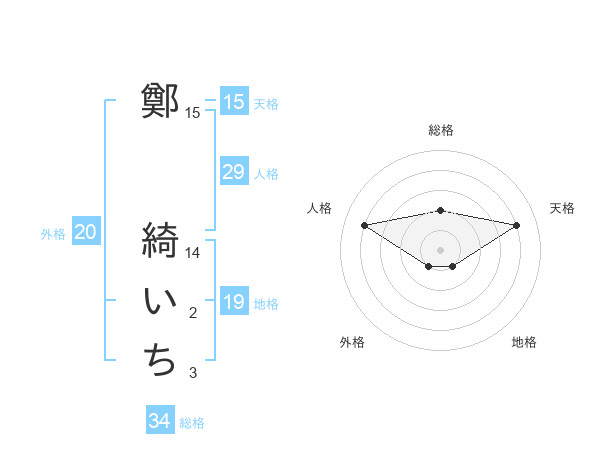 鄭 綺いちさんの天格は15画の4点!