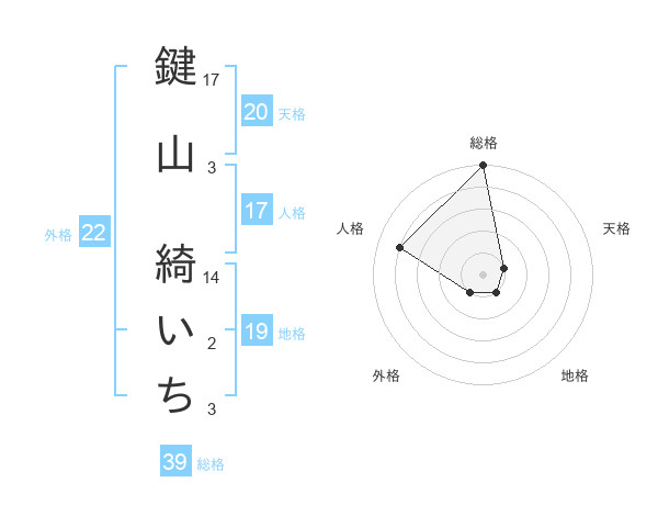 鍵山 綺いちさんを姓名の画数から五運を鑑定