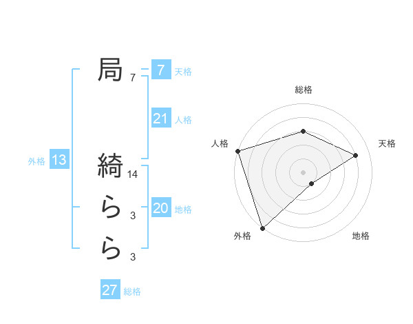 局 綺ららさんの外格は13画の5点!