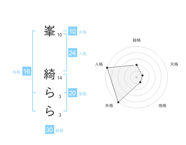 峯 綺ららさんを姓名の画数から五運を鑑定