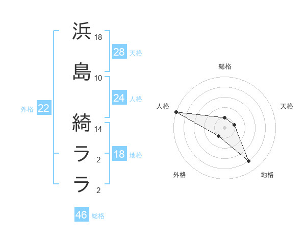 浜島 綺ララさんを姓名の画数から五運を鑑定