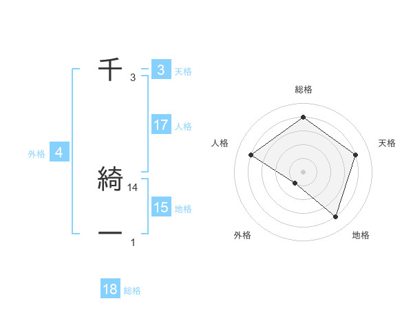 千 綺一さんの総格は18画の4点!