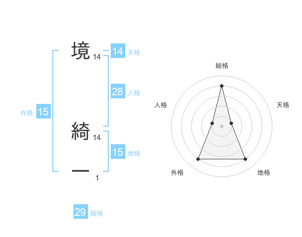 境 綺一さんの総格は29画の4点!
