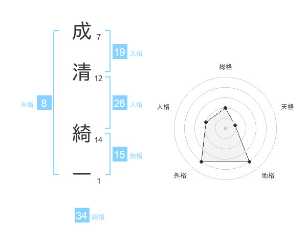 成清 綺一さんの総格は34画の2点!