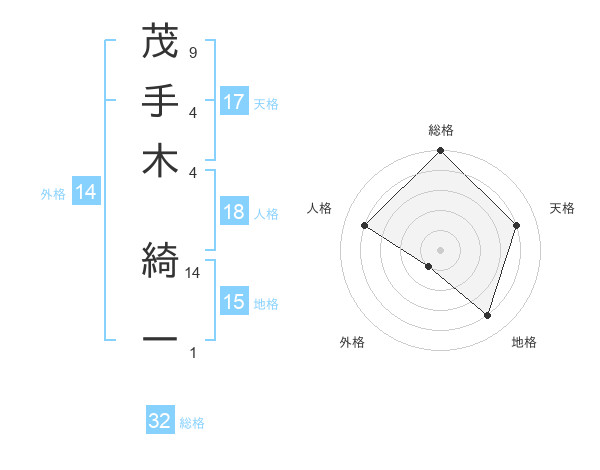 茂手木 綺一さんの総格は32画の5点!