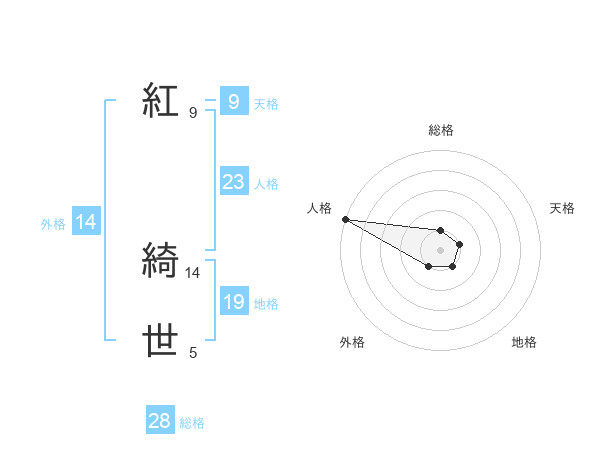 紅 綺世さんの人格は23画の5点!