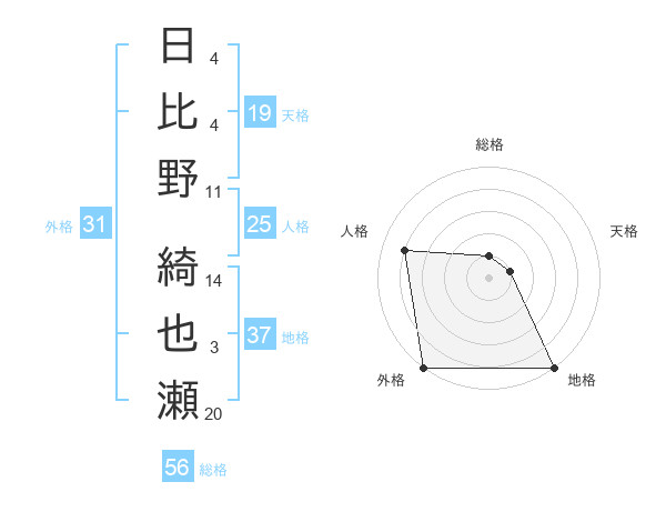 日比野 綺也瀬さんを姓名の画数から五運を鑑定