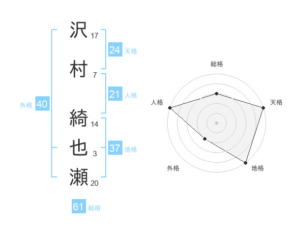 沢村 綺也瀬さんを姓名の画数から五運を鑑定